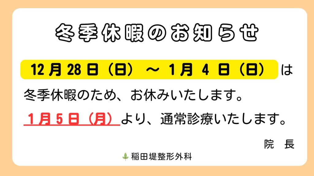 冬季休暇のお知らせ(2025年12月28日~2026年1月4日)