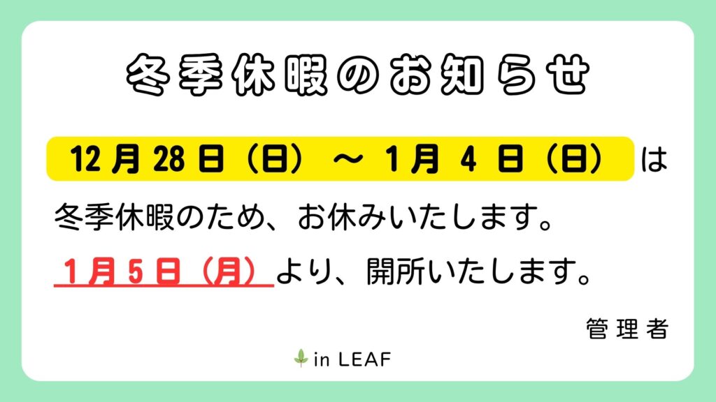 冬季休暇のお知らせ(2025年12月28日~2026年1月4日)